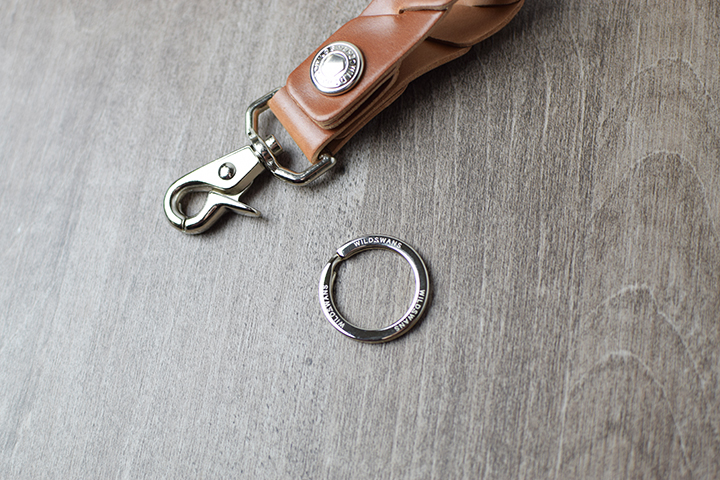 BRAIDには二重リングと呼ばれる金属パーツも付属されます。こちらにカギを接続して本体の帯に通すことが基本的なBRAIDの使い方です。