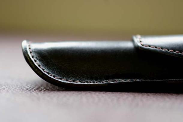 2本差し・3本差しに続き、今回の1本差しもまた所謂絞り加工は使わずに、革が本来持っている反発力を活かし、立体的なパターンの裁断と縫製によって製作されています。