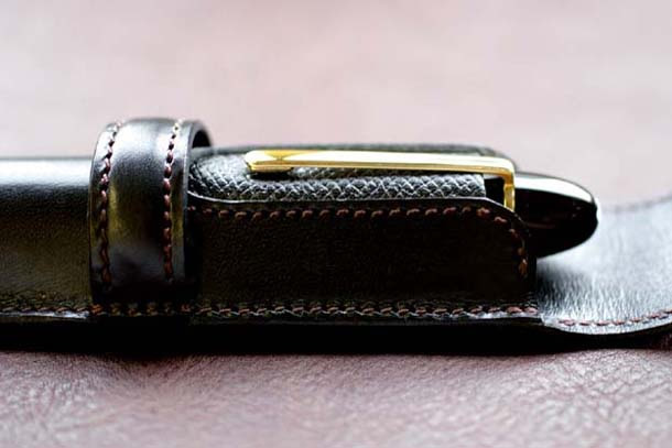 ケース本体の素材には堅牢なベルギーの皮革・サドルプルアップを使用しています。使う程に風合いを増していきますので、何年も使っていくと大変迫力が出てくるでしょう。