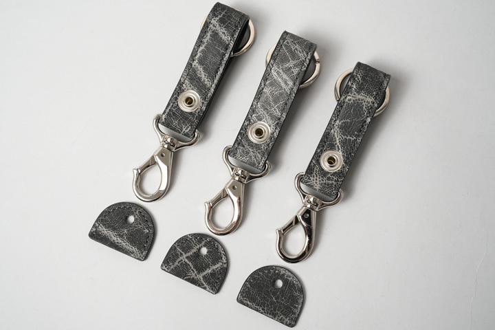 軽やかなキーホルダーはエキゾチックレザーに馴染みの無い方でも取り入れやすいのではないでしょうか。さりげない存在感にたしかな実力を秘めた人気のキーホルダーです。