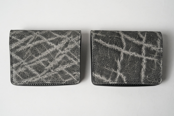 先述した通り、エレファントはとりわけ個体差が激しく、当然製品の表情は様々です。シワの入り方一つとっても同じ模様は決して存在しません。見る角度によっては涼やかで風流な雰囲気が漂い、大きさによっては鉱物のようなハードな印象を抱きます。その不思議な存在感は言葉では表現しきれませんが、墨染の魅力を最大限に引き出し、これまでに感じたことのないエレファントの一面が垣間見える、新境地のエキゾチックレザーであることは間違いないようです。