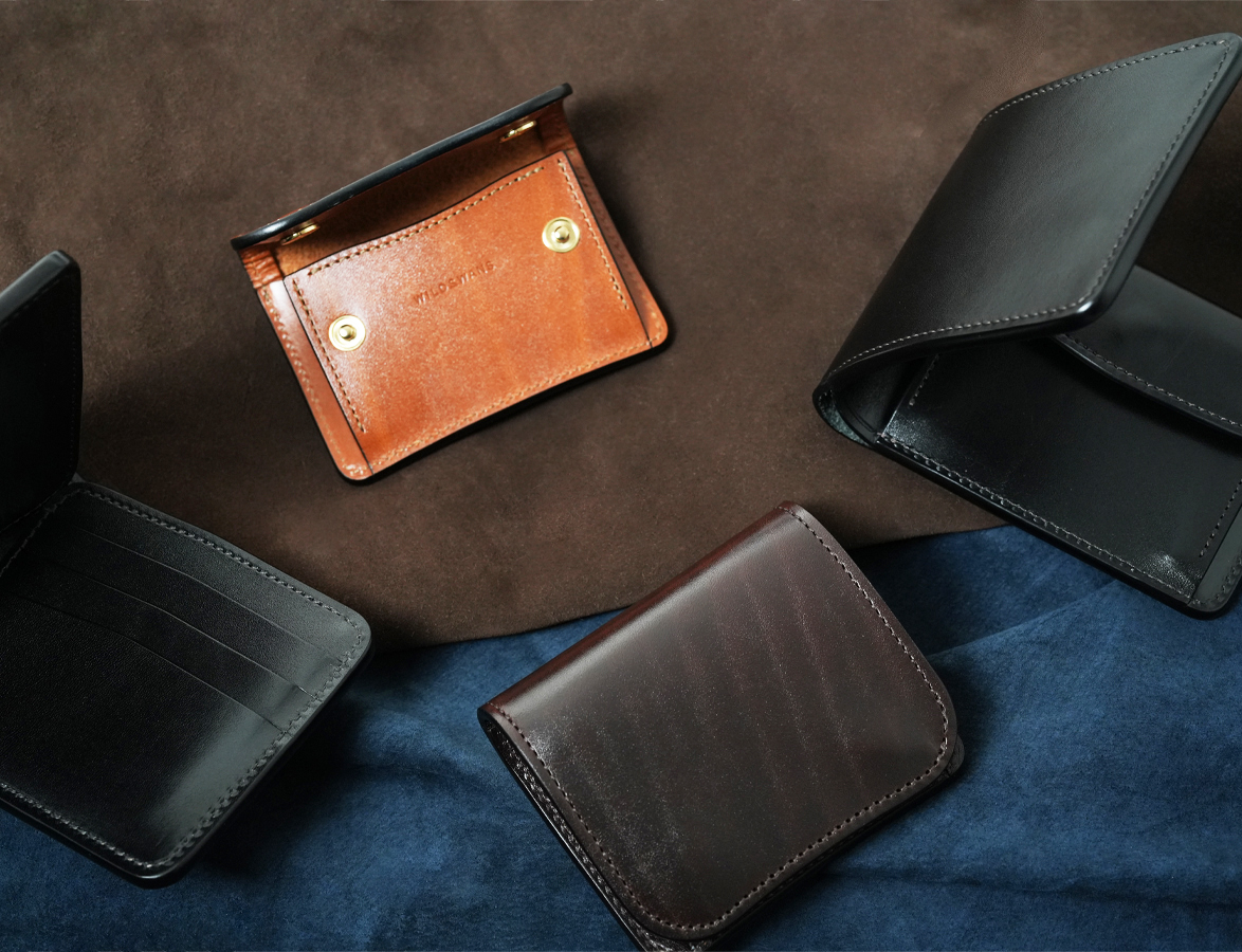 サドルプルアップは高い繊維密度からなる強いハリ感を持ち、タンニン鞣しによって美しい艶が現れるのが特徴です。定番品の3カラー(ブラック、チョコ、ナチュラル)は、完売後に入荷案内のお手続きが可能です。店頭でも多数のエイジングサンプルをご覧いただけますので、ご来店の際にお申し付けくださいませ。