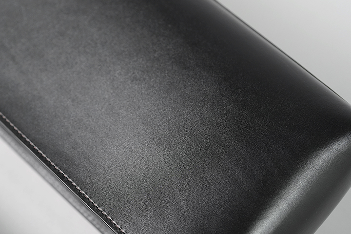 ここからはサドルプルアップCOLLIERの詳細をご紹介させて頂きます。まずCOLLIERの一番大きな外装パーツについては、一部の箇所を除くとその大部分に原厚のサドルプルアップが使用されています。ぐるりと外装を覆うパーツは、これまでのCOLLIERとは異なり、ファスナーパーツ周辺や背当て部分などを除くと切り替え部分がありません。また、このように切り替え部分の少ない大きな板面のサドルプルアップを使用することで、素材が持つ重厚さや力強さに加えて、エレガントな表情も生まれます。製品のディテール自体は従来のCOLLIERを踏襲していますが、サドルプルアップを使用し、その素材の持ち味を最大限生かすことで、これまでのCOLLIERとは全くテイストが異なる製品として生まれ変わりました。