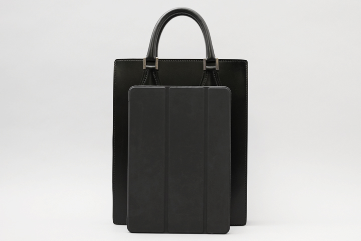 サイズ感はA4サイズより一回り小さく、iPad(11インチ以下)などを収納するのに丁度良いサイズ感で、 タブレットメインでお仕事をされる方向けのサイズ設計になっています。