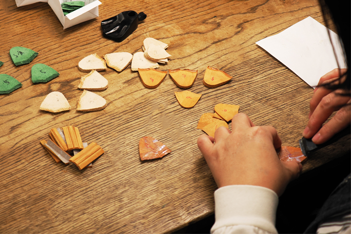 製作で最も苦労したのは、型紙の作成でした。ひとつのスワンペンスタンドに対し、大小10枚の型紙に少しずつ変化を付けて滑らかな曲線を実現しています。数ミリの差で曲線の角度や印象が大きく変わるため、試作と調整を繰り返しながら理想のフォルムを追い求めました。