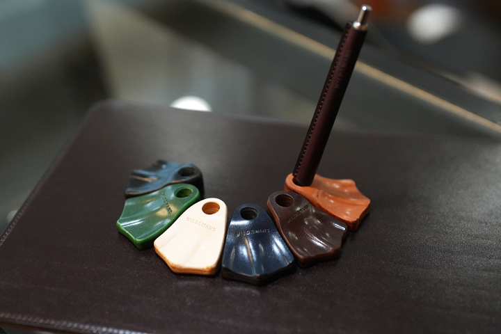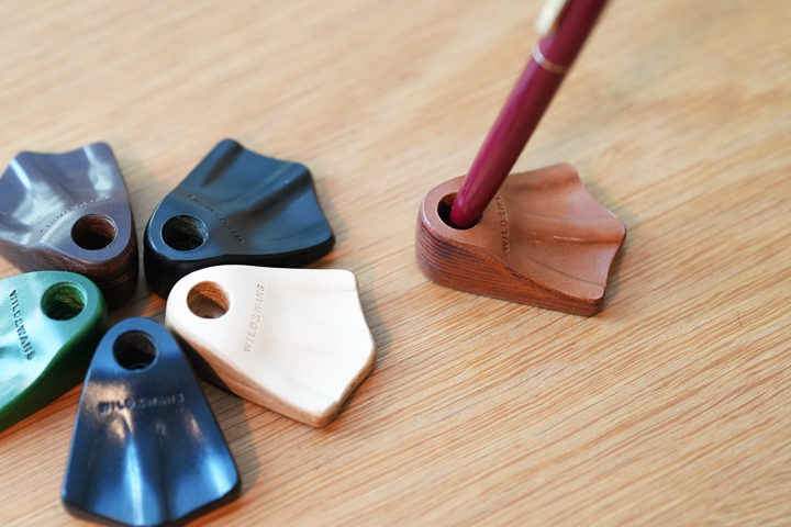 ワイルドスワンズのものづくりにおいて欠かせないのが、革の断面=「コバ」へのこだわりです。今回ご紹介するスワンペンスタンドはデスク上などでペンを立てるスタンドですが、そのコバの美しさを最大限に引き立てるため、幾重にも革を積み重ねて形づくられた特別なアイテムです。見た目の可愛らしさと精密な構造の両立に、職人の技と探求心が詰め込まれています。
