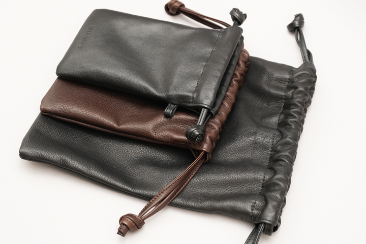 革の上質さを感じながらシンプルにご使用頂けるドローストリングバッグ・BOURSE(ブレス)から、ミニ財布やスマートフォンに最適なSサイズが登場致しました。