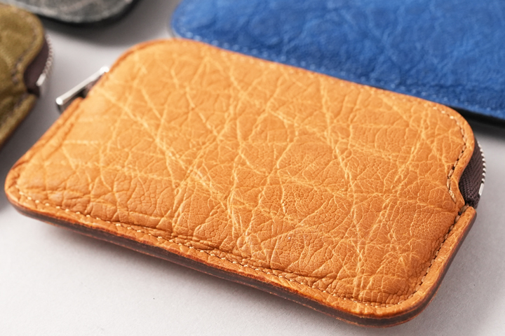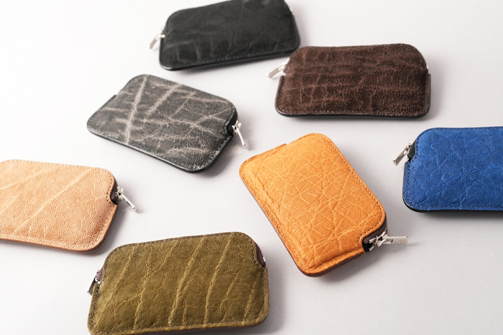 数あるエキゾチックレザーの中でも群を抜いた耐久性を誇るエレファントレザー。しなやかで強靭、かつ鮮やかなカラーリングにより人気の素材です。