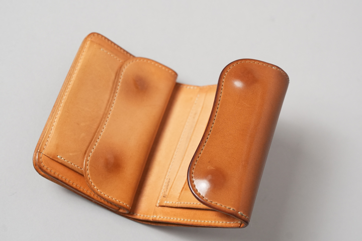 小さな端革を短期間エイジングさせただけでもこのような変化が表れているのですから、更に大きい板面を持つ製品を長期間使い込んだ際の楽しみはひとしおです。