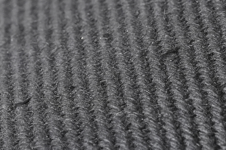 画像のように生地表面にネップ(繊維が絡み合うことで生地表面に生じる繊維の塊)が生じますが、これは素材の特性上生じるものになります。予めご了承下さいませ。