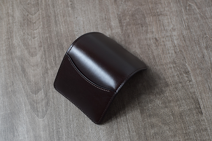 手ごろなサイズのGENERALは、ジャケットの内ポケットにも収納できるコンパクトな名刺入れです。フラップに留め具を備えていないため、お使い始めはサドルプルアップの強いハリ感により、フラップが開いた状態です。しかし、使用していくと革が馴染み自然にフラップが閉じるようになります。