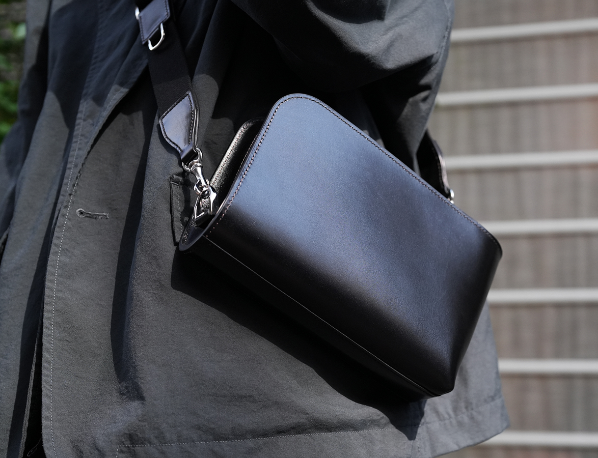 使用しているシュリンクカーフの質感と発色を考えると、ブラック、チョコレート、ネイビーの3色は、シックで重厚な大人の雰囲気を感じさせるのが特徴です。オリーブグリーン、トープ、キャメルの3色は、落ちついた品のある発色と控え目な色気がとても魅力的です。ジーンブルー、オレンジ、エッグシェルは、鮮やかな色目が軽快な印象を与えるので、快活なイメージを感じさせます。ただ、どれもこれも本当にいい色ですので一見の価値はあります。